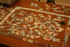 We always have a puzzle going on the office desk. I can put all the edge pieces together but after that I give up! Not enough patience I guess.